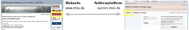 Der Web-Auftritt von IMVE Immobilienversteigerungen besteht aus: Webseite imve.de und Auktionsseite auktion.imve.de.