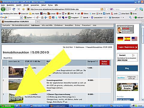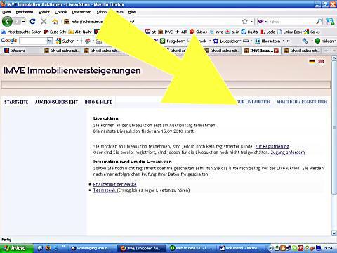 Um an der Immobilien-Versteigerung mitzubieten, müssen Sie sich als erstes online registrieren. Klicken Sie auf Anmelden/Registrieren auf der rechten Seitenleiste von www.imve.de Sie gelangen auf die Auktionsplattform http://auktion.imve.de |